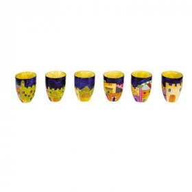 Yair Emanuel Hand Painted Wood Small Kiddush Cups Set, 6 Cups - Jerusalem$48.95New! -