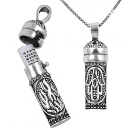 Sterling Silver Necklace with Mezuzah and Scroll Pendant HaEsh Sheli - My Fire & Hamsa$24.86 - $34.83 -