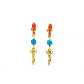 Amaro Dangle Earrings - Gold Plate, Semi-Precious Gems Turquoise & Fiery Orange$64.23 -