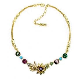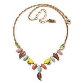 Amaro, Handmade Gold Necklace with Colorful Leaf Shapes - Semi Precious Stones$145.98 -