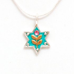 Blue Flower Star of David Pendant - Shahaf$66.50 -