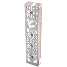 Dorit Judaica Laser Cut Steel Mezuzah Case Flowers - Swarovski Stones14 cm / 5.5" Clear or Light Blue Stones$37.64 -