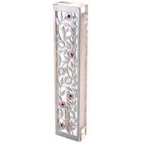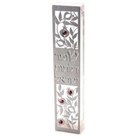 Dorit Judaica Laser Cut Steel Mezuzah Case Pomegranates, Divine Name - CrystalsSize: 14 x 3 cm / 5.5" x 1.2"$37.64 -