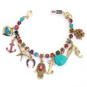 Amaro, Handcrafted Rose Gold Plated Charm Bracelet - Colorful Jewish Charms$113.28 -