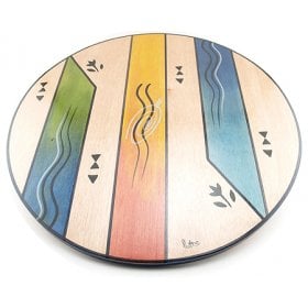 Kakadu, headed by husband and wife, Reut and Aharon Shahar, are a carpenter and artist team. Passionate about detail and perfection, they personally supervise every stage of production. Reut hand-paints every item with cheerful positive colors that breathe a reverence and love of life. True Israeli art – it radiates a sense of constant movement. Finally, the design is sealed with many coats of varnish that are resistant to kitchen spills or stains.