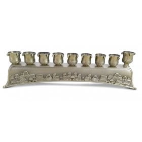 2-in-1 Nickel Plated Menorah, Jerusalem Engraving - Shabbat Lights on ReverseWidth: 11.4"$67.62 -