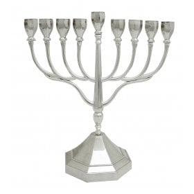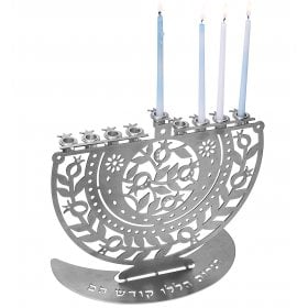 The most enhanced way of lighting the Chanukah Menorah is with oil. This is to commemorate the tiny cruse of oil which miraculously burnt for eight days instead of one, when the Jews entered the Holy Temple to rebuild it and searched for undefiled oil with which to light the Menorah. One can use our floating wicks to light in the oil, or some prefer to roll their own wicks from cotton. These Chanukiyot gently glow with a bright spiritual light. We feature the standard ones, in all sizes and in mainly traditional shapes, to the special Israeli artist ones, such as Dorit Judaica, with laser cut aluminum ones or intricately painted with oriental and colorful designs. The traditional Chabad one has a singular shape which is uniformly used by Habbad followers worldwide. There are also Star of David, geometric and diamond designs available with these popular products.