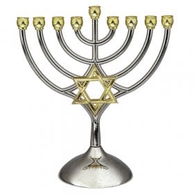 Silver and Gold Chanukah Menorah, Curved Branches with Star of David Design - 6.3"$32.29 -