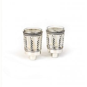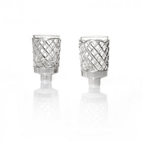 Dress up your Shabbat lights with silver plated inserts. They come in a choice of delightful designs that are pleasing to the eye and will dress up your Shabbat candlesticks with a touch of graceful inspiration. They will hold regular or small size candles. The glass cup inside is easily removed for washing.