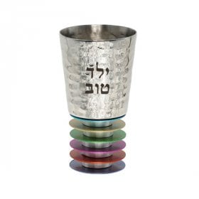 For the baby’s room, we are sure you will be as enthusiastic about Dorit Judaica’s wall decoration as we were. Each one is a stunning work of art, displaying life-like pictures with words of blessing. Many have an optional matching Mezuzah case which makes a stylish gift set. Ester Shahaf also displays richly decorated Baby Blessings as a wall decoration. For boys, there is a handsome modeh ani clock too.